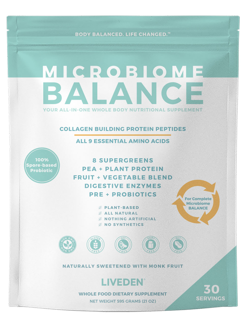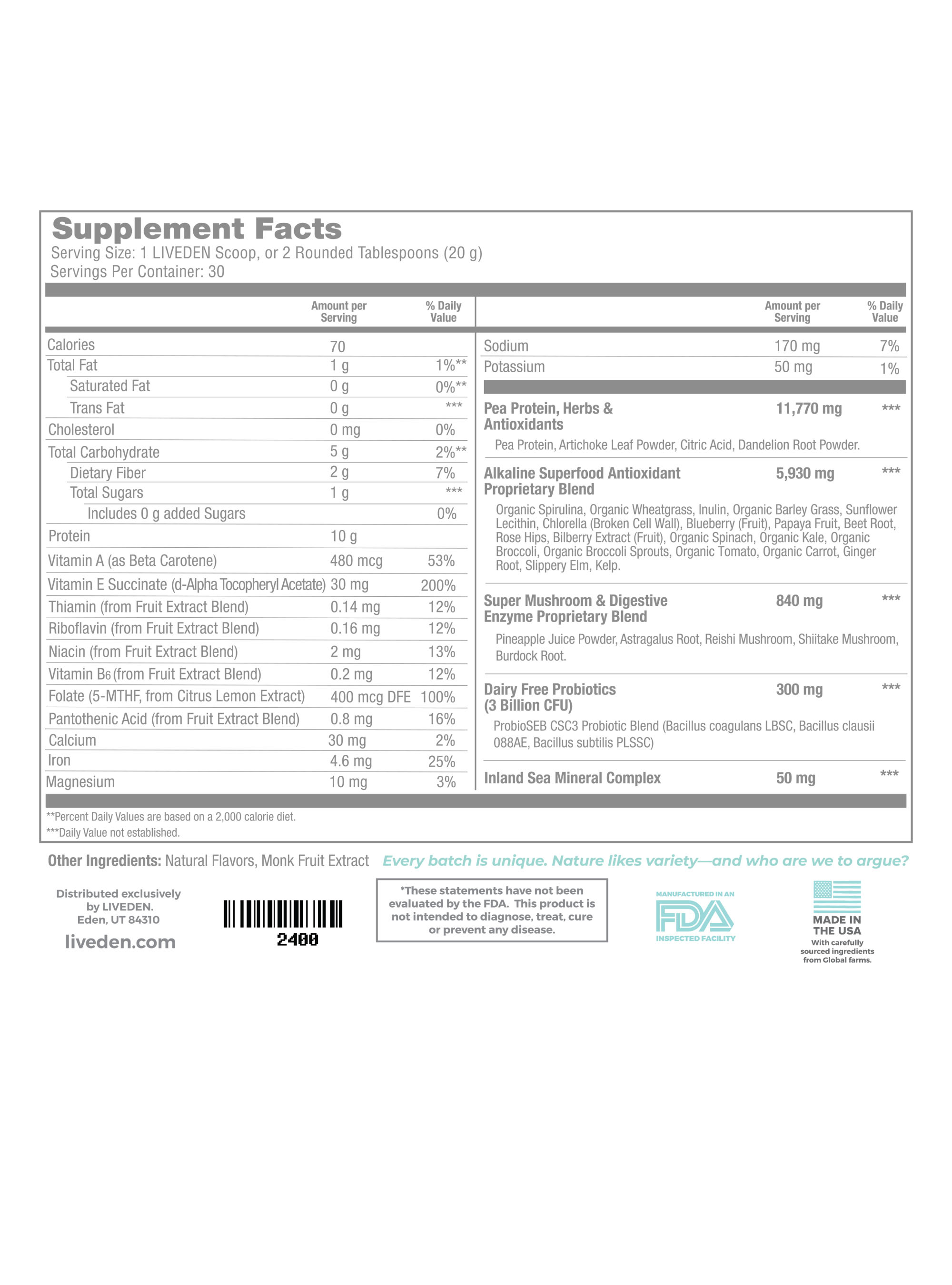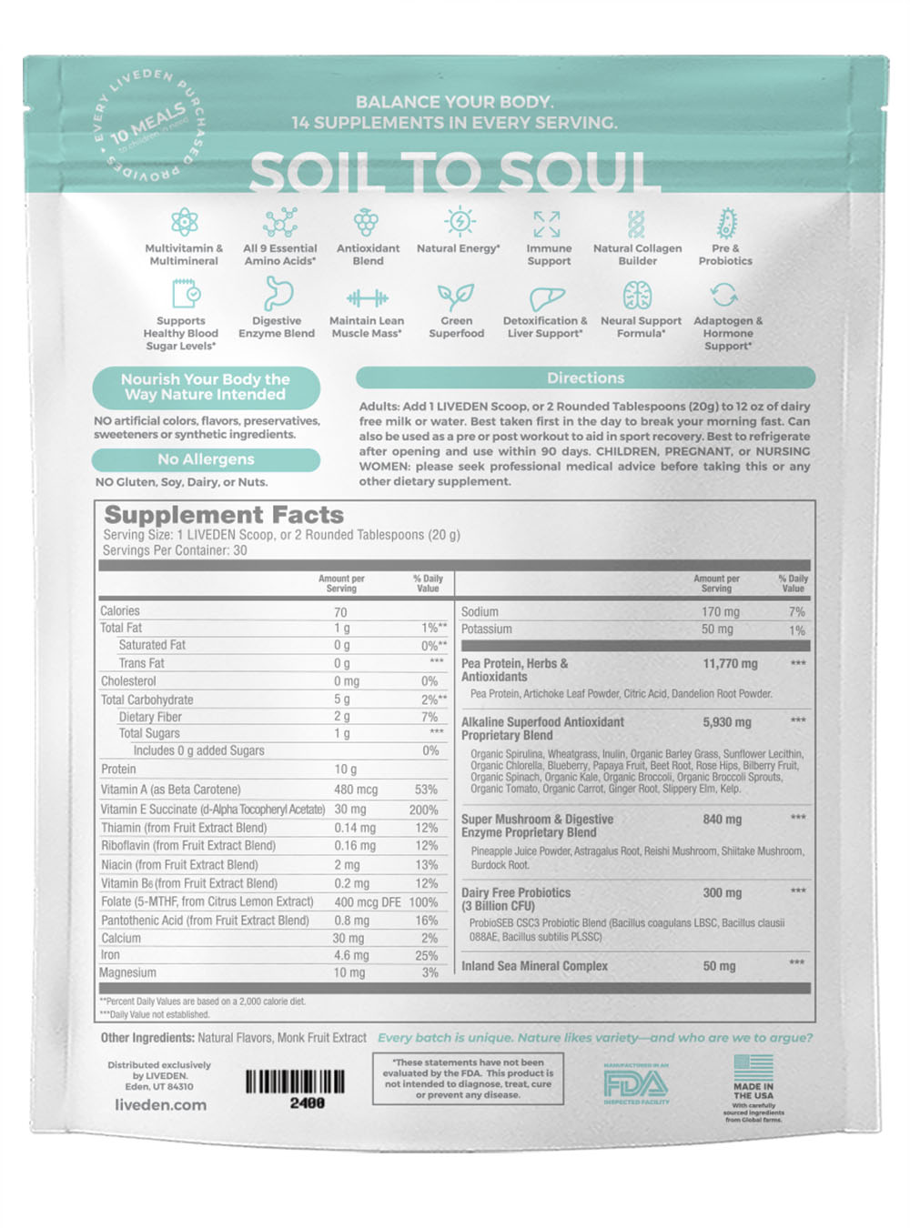 It's why we created LIVEDEN Superfood. A blend of over 60 powerhouse ingredients to help balance and stabilize the body, nourish the digestive tract, provide natural sustained energy, increased mental acuity, boost the immune system, and stop those cravings in their tracks.*